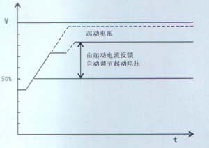 設計起動初始電壓為40%FLV,則起動初始電流為80%FLA左右。高壓運行后,起動電流產生變化,根據起動電流的信息反饋,自動調節起動電壓增至所需的最大值。